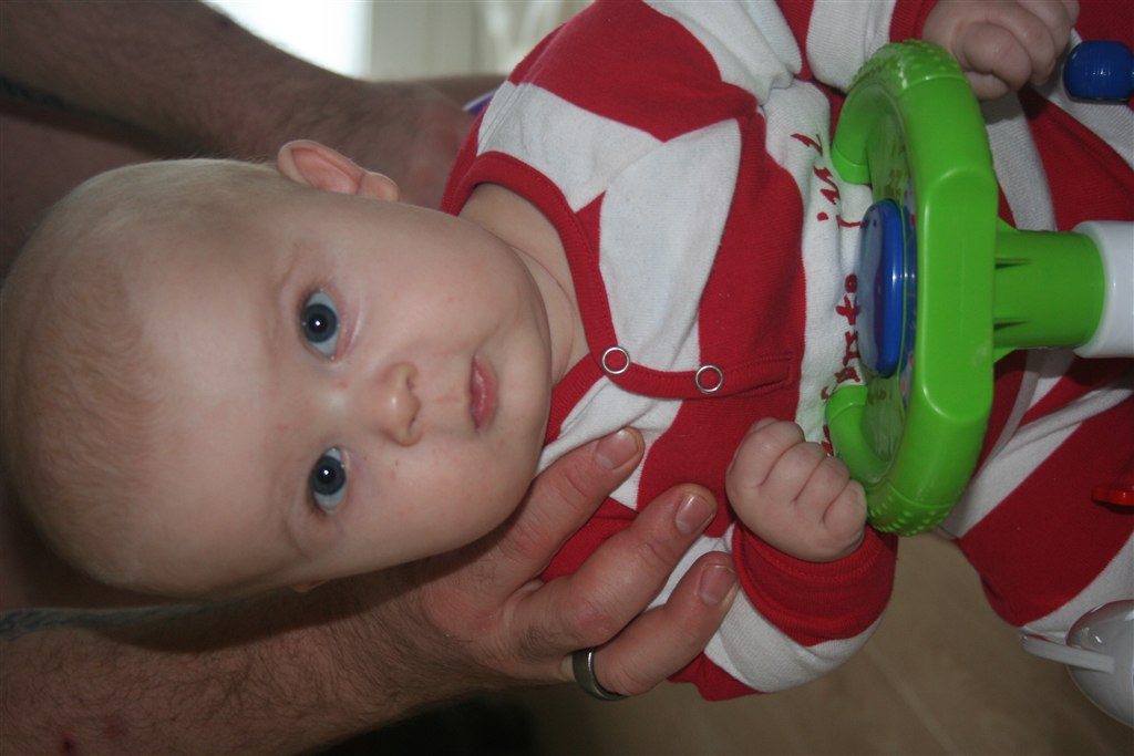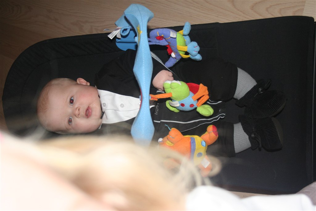 Han er begyndt at spise grød en gang om dagen og ellers ammer jeg ham fuldt ud.