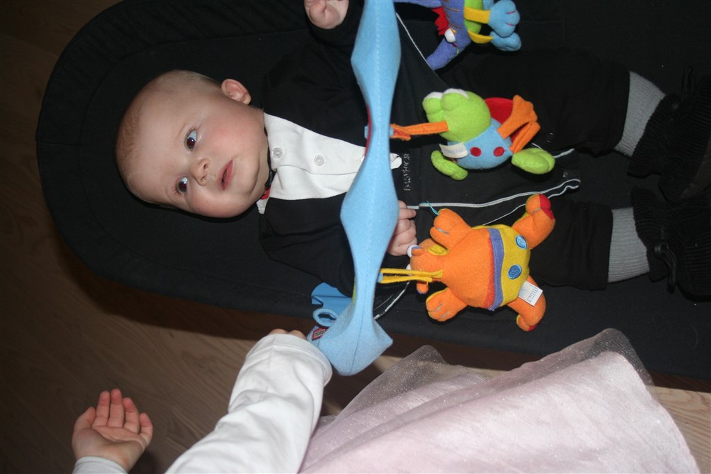 han ruller fra mave til ryg og en enkelt gang imellem fra ryg til mave