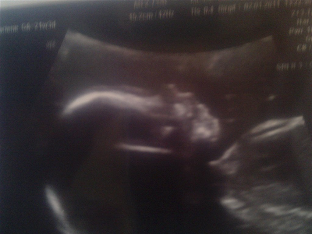 Vil lige dele et super scanningsbillede af vores lille dreng i fin profil... (hvis jeg altså kan finde ud af det)