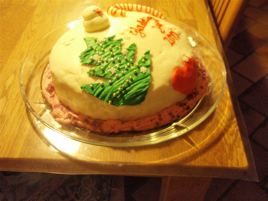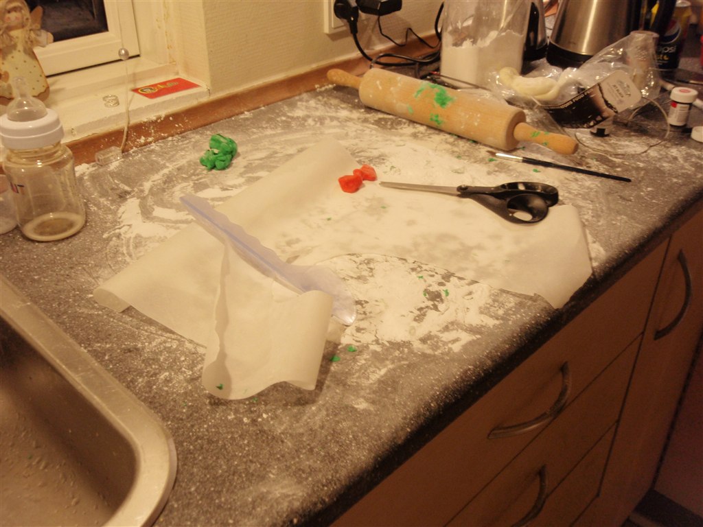 ge kan da se på billedet at den slet ikke er grim! så tænker bare at du jo også kan skære et fint langt bånd i mmf/fondant og sætte på forneden.det vil nemt skjule de små folder der er.