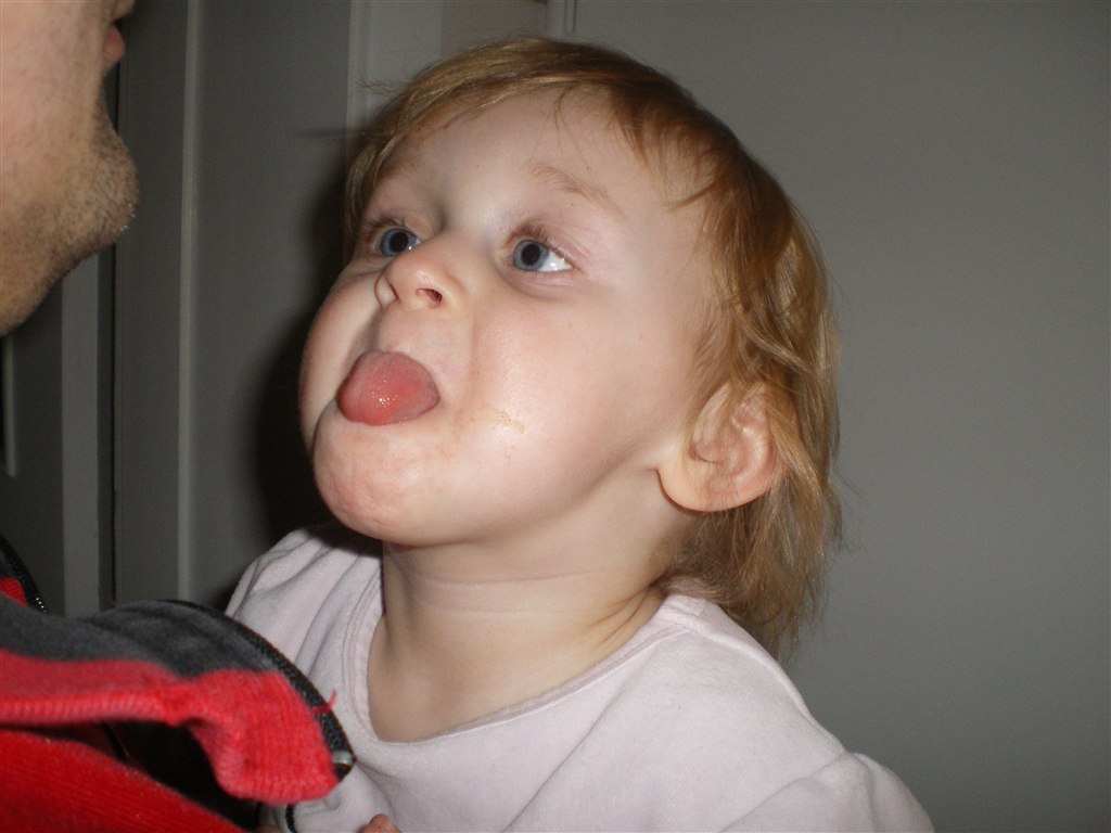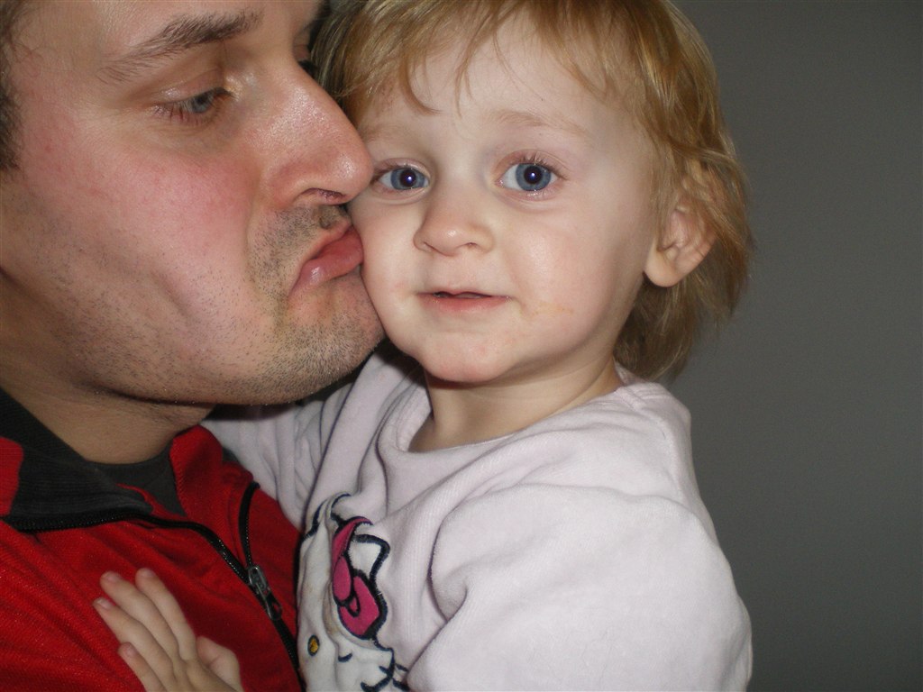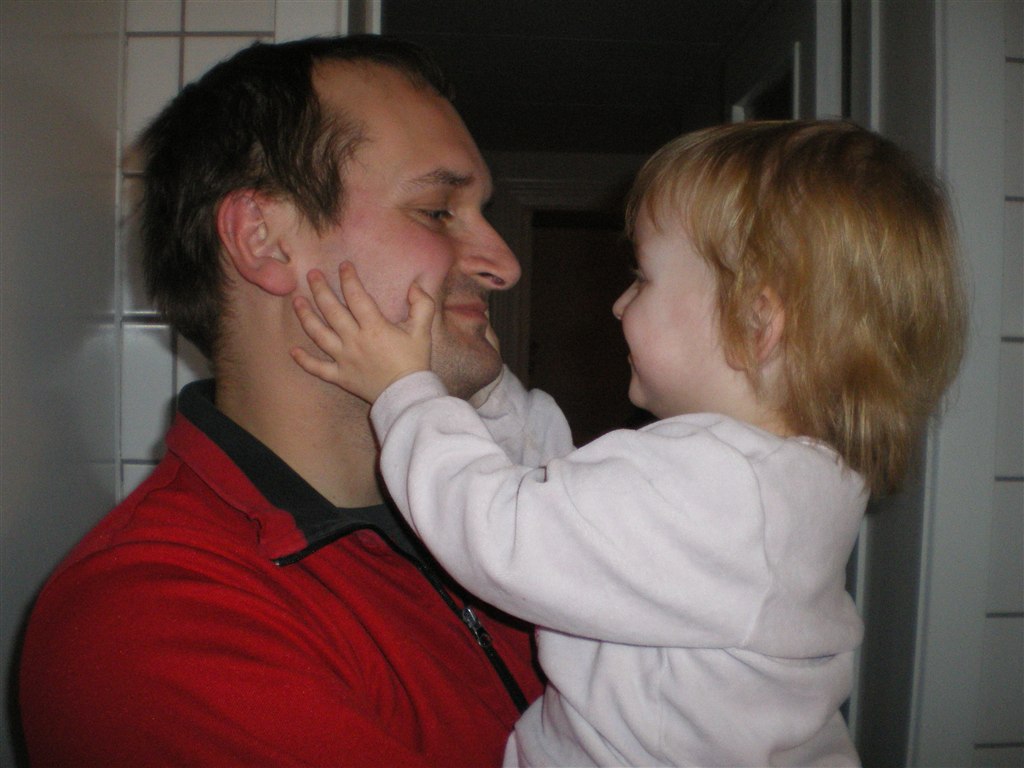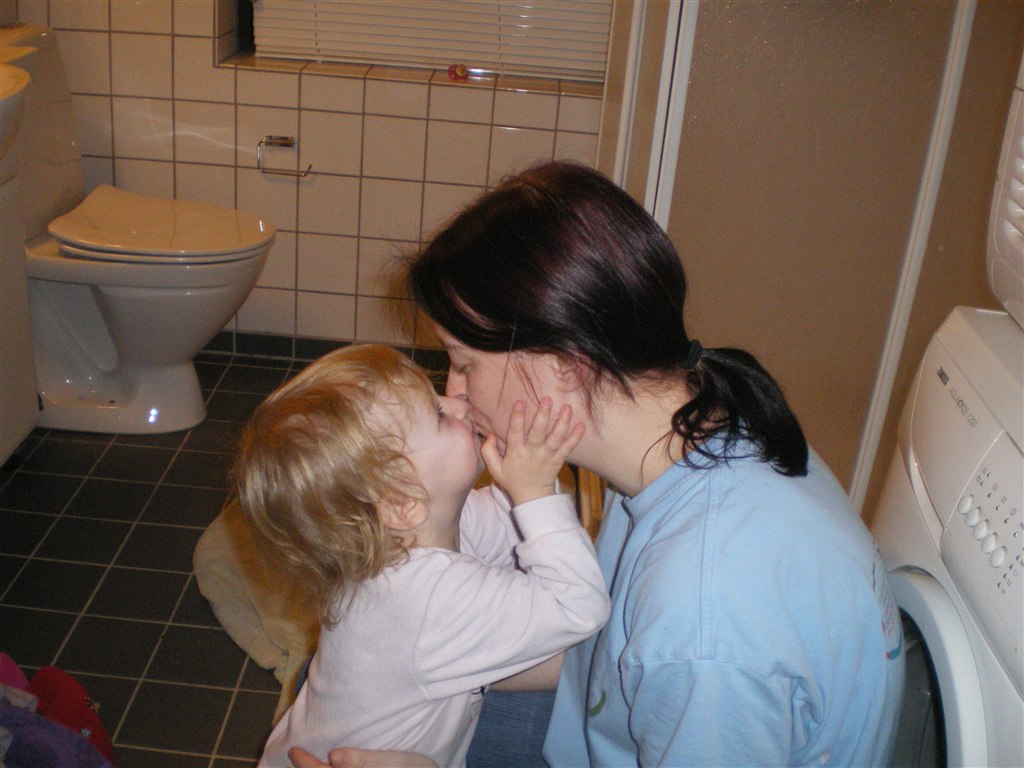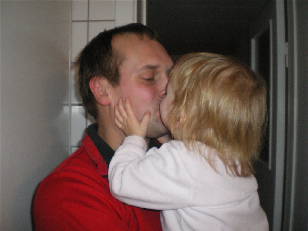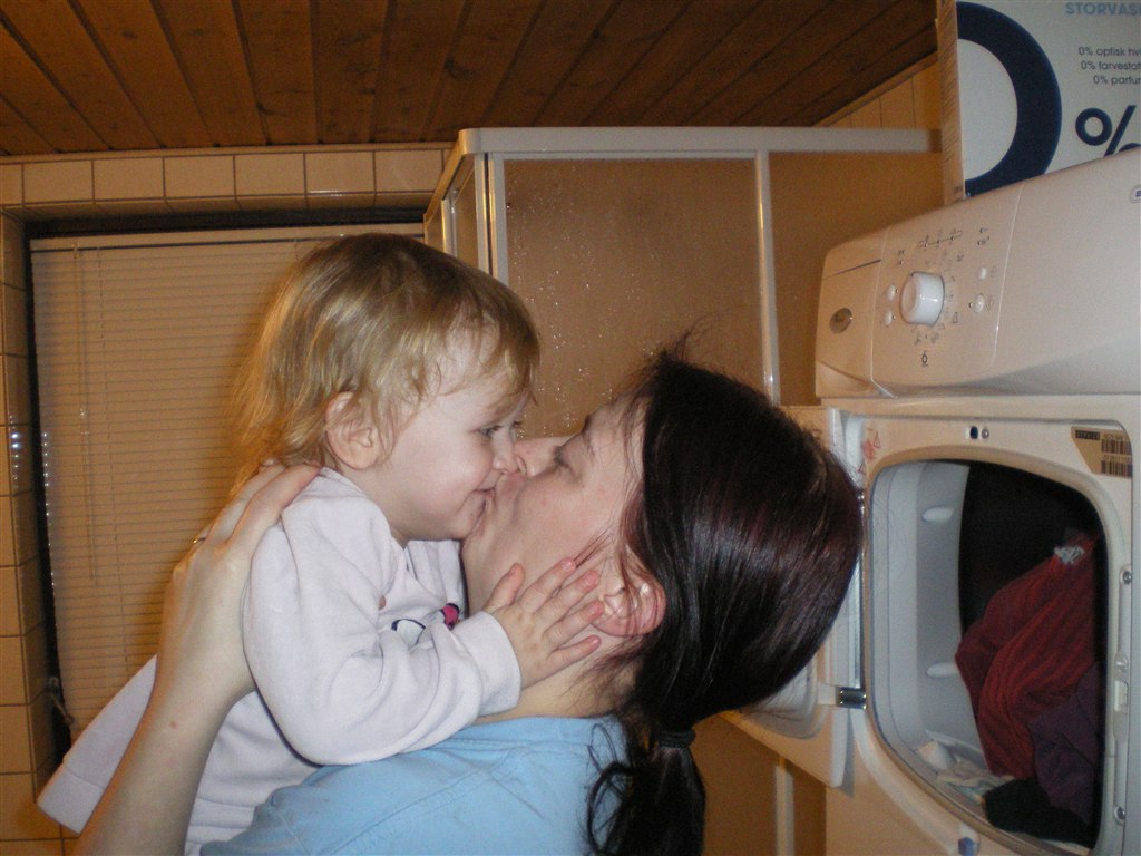 Julie så at Allan og jeg lige tog et kys på vej ud i køkkenet... Hun vil sørme også kysse på sin mor og far... Så sødt, skønt og dejligt... Hun er sådan et varmt menneske når hun skal give et kys...