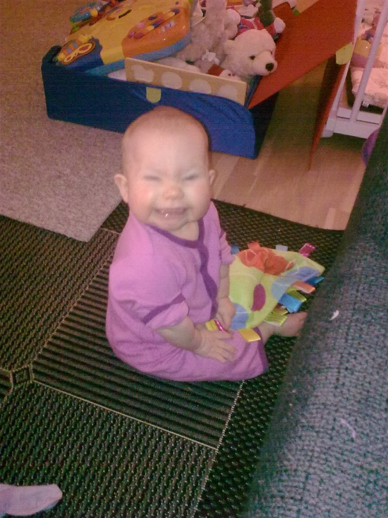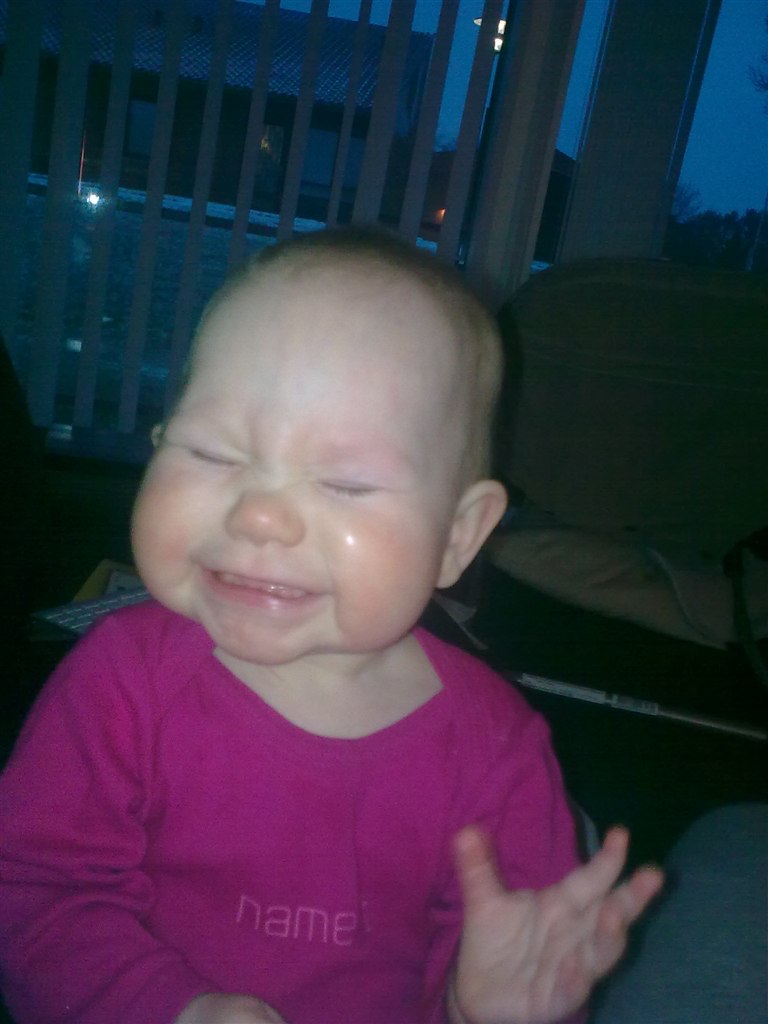 Her er min pige på snart 9 måneder Hun har nu lært, at når or og far finder kameraet frem så findes det store smil frem Blitzen er dog skarp for de små øjne. Elsker når hun smiler