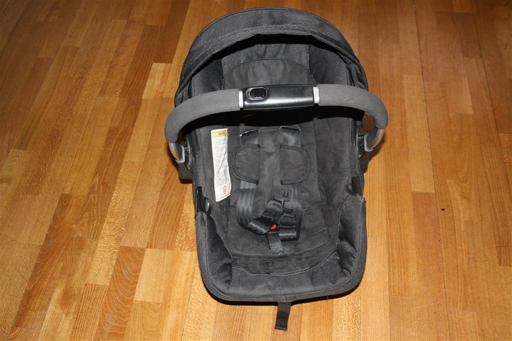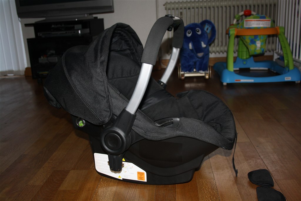 Det er bagudvendt autostol, der er "babyindlæg" både under numsen, og på begge stropper som let kan tages væk når dit barn er stort nok til det
