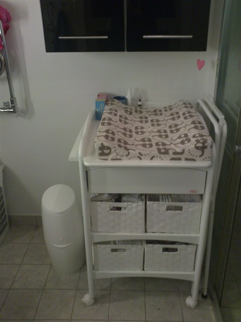 Jeg vil da også gerne vise vores pusleplads. Den står på vores badeværelse, og da det ikke er vildt stort har vi valgt at puslepladsen ikke skal være så stor.