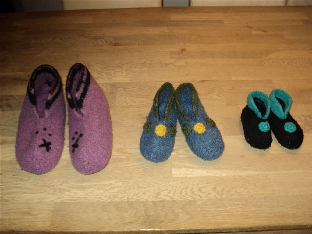 Herhjemme bruger Malthe, Mikkel og mor hjemmestrikkede uld-filtsutsko med gummisål, så vi står fast. Det er drengenes bedstemor, som strikker på livet løs. Og vi er stor fan af dem.