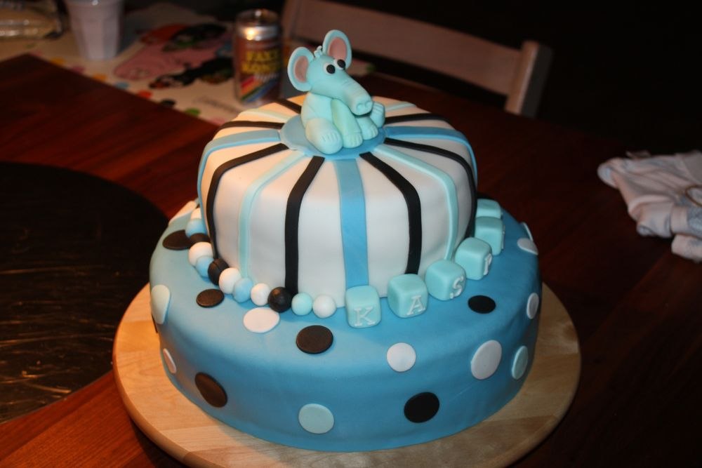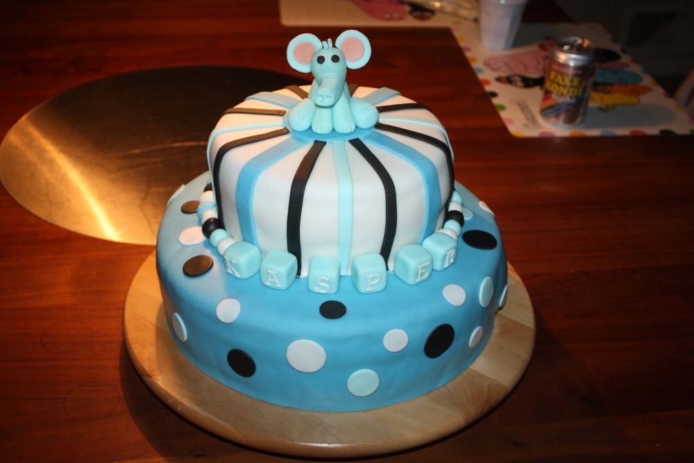 Her er dagens kager Min veninde skal giftes i morgen og samtidig skal deres søn døbes. Jeg valgte at lave 2 kager, for så kunne vi få dåbskage til eftermiddagskaffen og bryllupskagen efter den store middag - og så synes jeg samtidig at den lille søde Kasper skulle have sin helt egen kage, så det ikke kun blev bryllup Det er min første elefantmodellering, og jeg synes han er blevet noget så nuttet Monogrammet havde jeg hellere ikke prøvet før, men det gik faktisk super nemt.