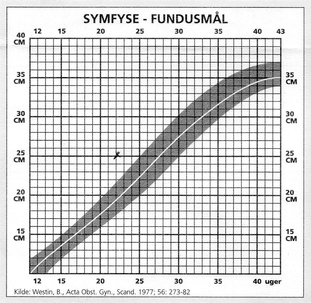 Jeg har vedhæftet et billede af maven, og en kopi af min vandre journal, med det stykke der viser Symfyse - Fundusmål som ligger en del over gennemsnittet.