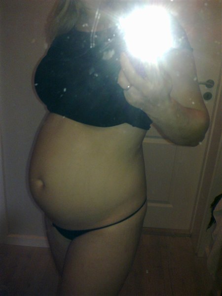 Det er lidt svært for mig at sammenligne, fordi jeg er noget tykkere end du er. Min mave er derfor delvis kamoufleret af fedt. Hvis jeg havde været slank, som du er, så havde min mave nok også stukket så meget frem, som din gør, vil jeg tro.