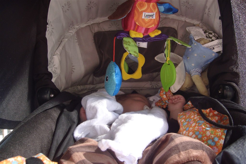 Har vedhæftet to billeder af vilma som ligger i liften (den lille vogn) og i voksien (som er åben - det var varmt)
