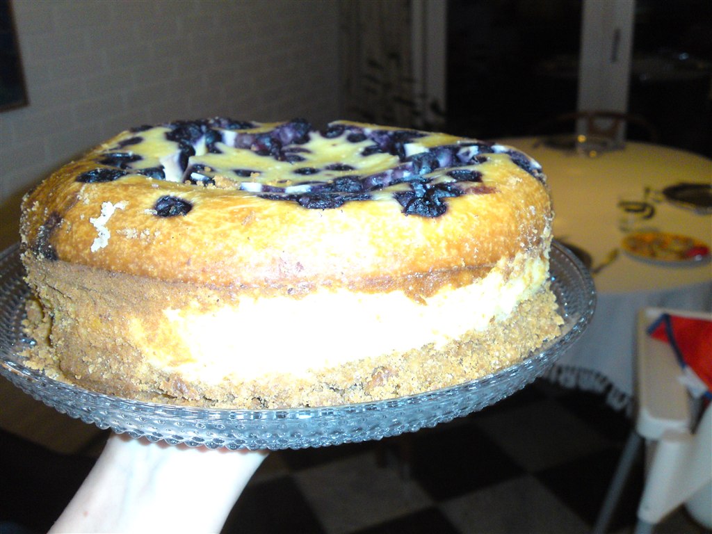 Jeg besluttede så at lave en cheesecake og da alle elsker blåbær var det oplagt