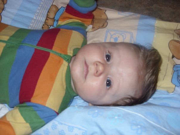 Her er Viktor som 3 1/2 måned samme alder som Vera er nu :) Så der går lige et halvt års tid inu før jeg kan få billeder af 2 lyshårede unger...Hihi.