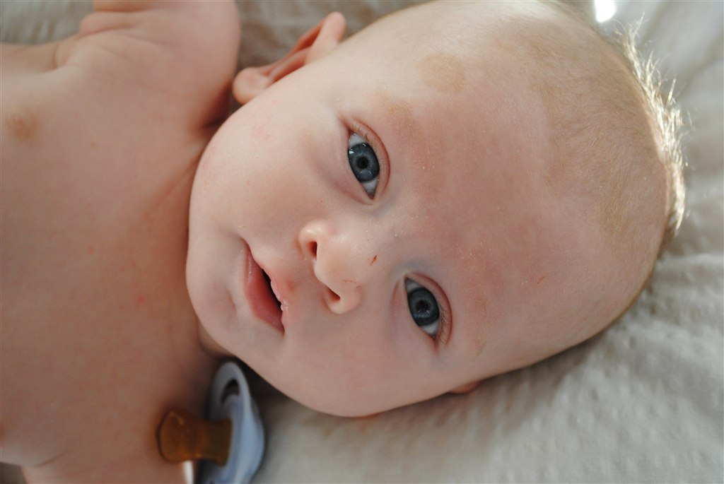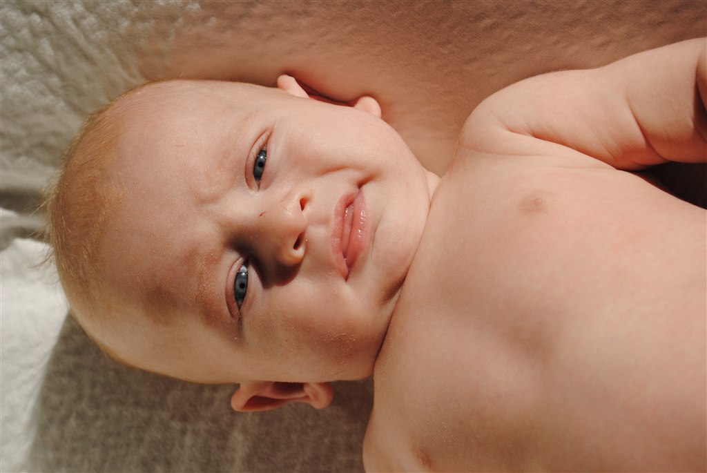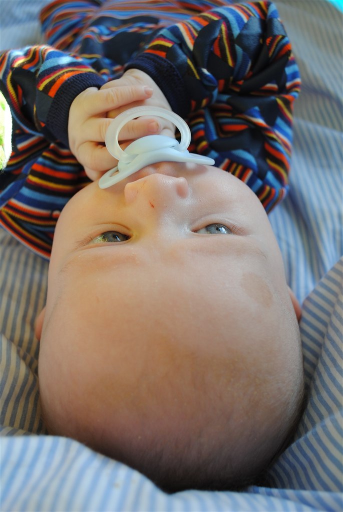 Han smiler og pludre, er EKSTREM opmærksom HELE tiden.. Han sover bestemt ikke dagene væk