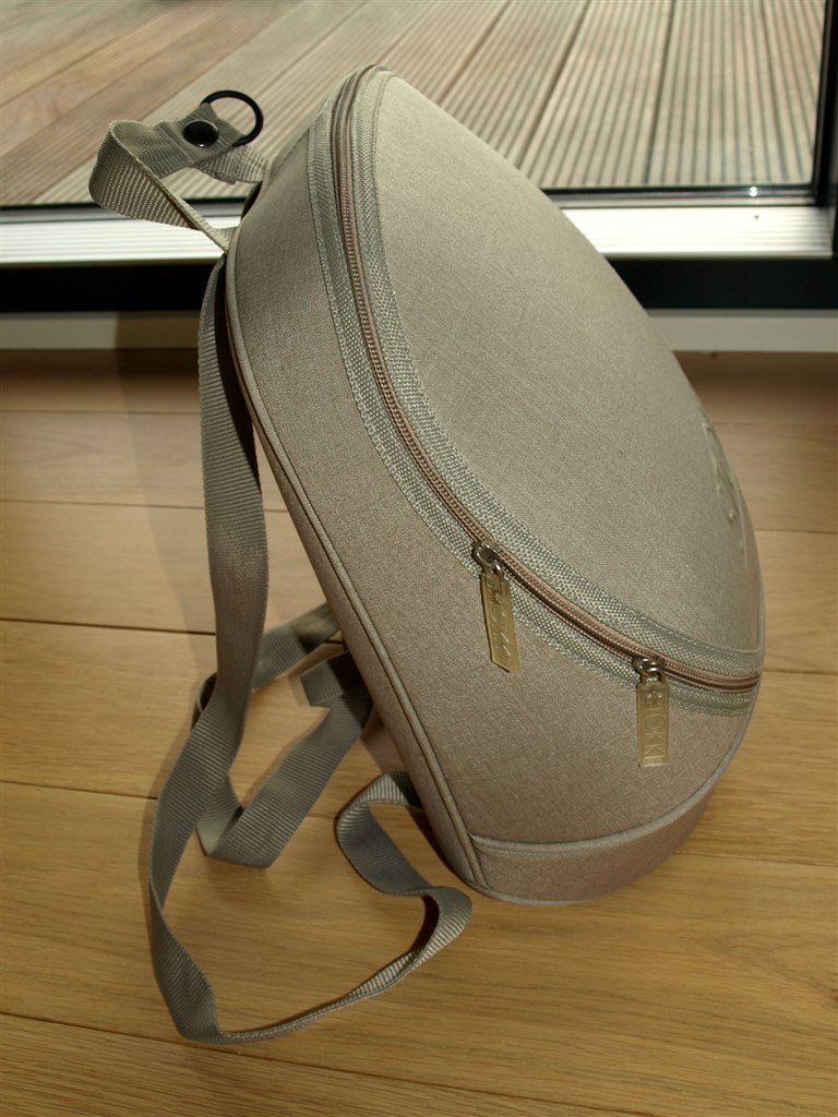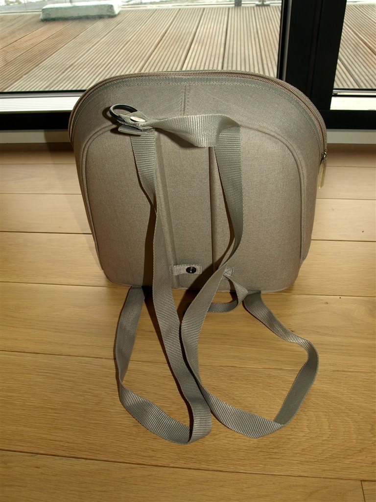 Tasken har seler og kan bæres på ryggen. Den kan også klikkes på stokke explory.