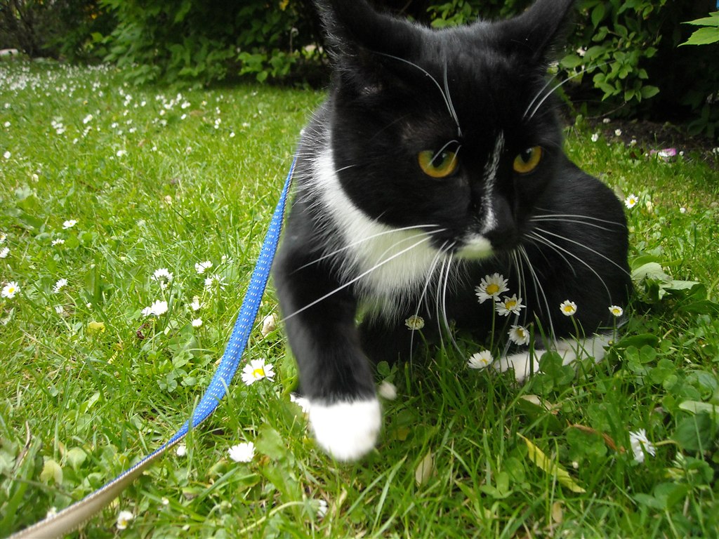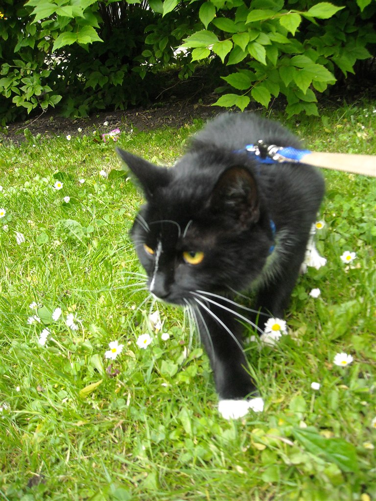 Hunkatten er 1,5 år gammel, lille i det - og lystrer navnet "Frigg". Katten har altid været indekat, men hun har været ude flere gange i snor (med succes) - og vi er sikre på, at hun godt kan vænnes til at være udekat, netop fordi hun ikke er så gammel.