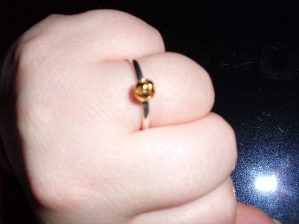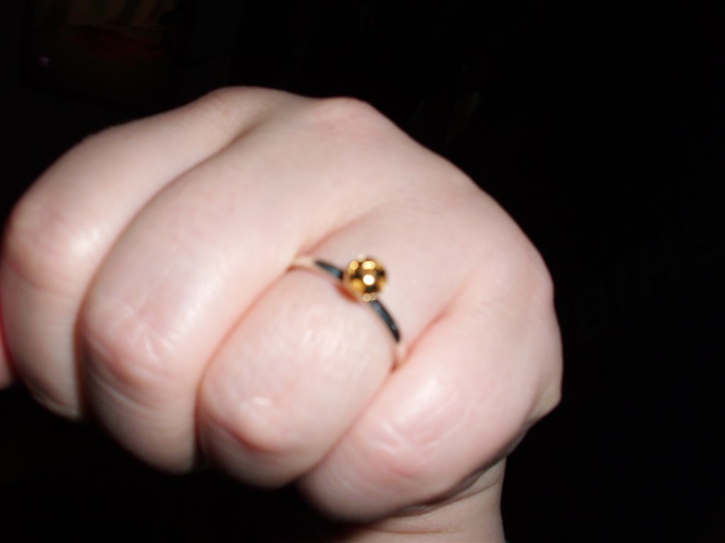 ønskebarn74 skriver: Ringen er i sølv med en hul guldkugle der er standset hjerter i... Hold op hvor er den flot... Den er til at samle med andre ringe (spinning)... Og blomster... Hvor er han bare skøn min mand!!!!