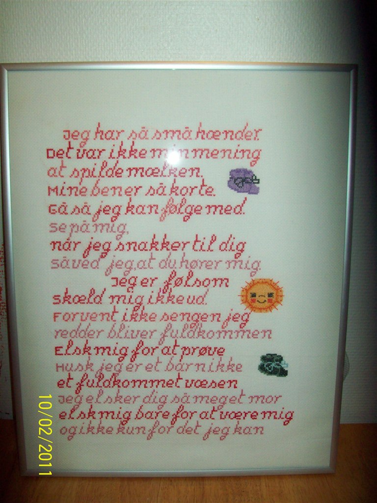 Jeg har også fået lavet et broderi helt færdig, sådan er det er klar til at komme op og hænge. Det har så taget ca 1 mdr.