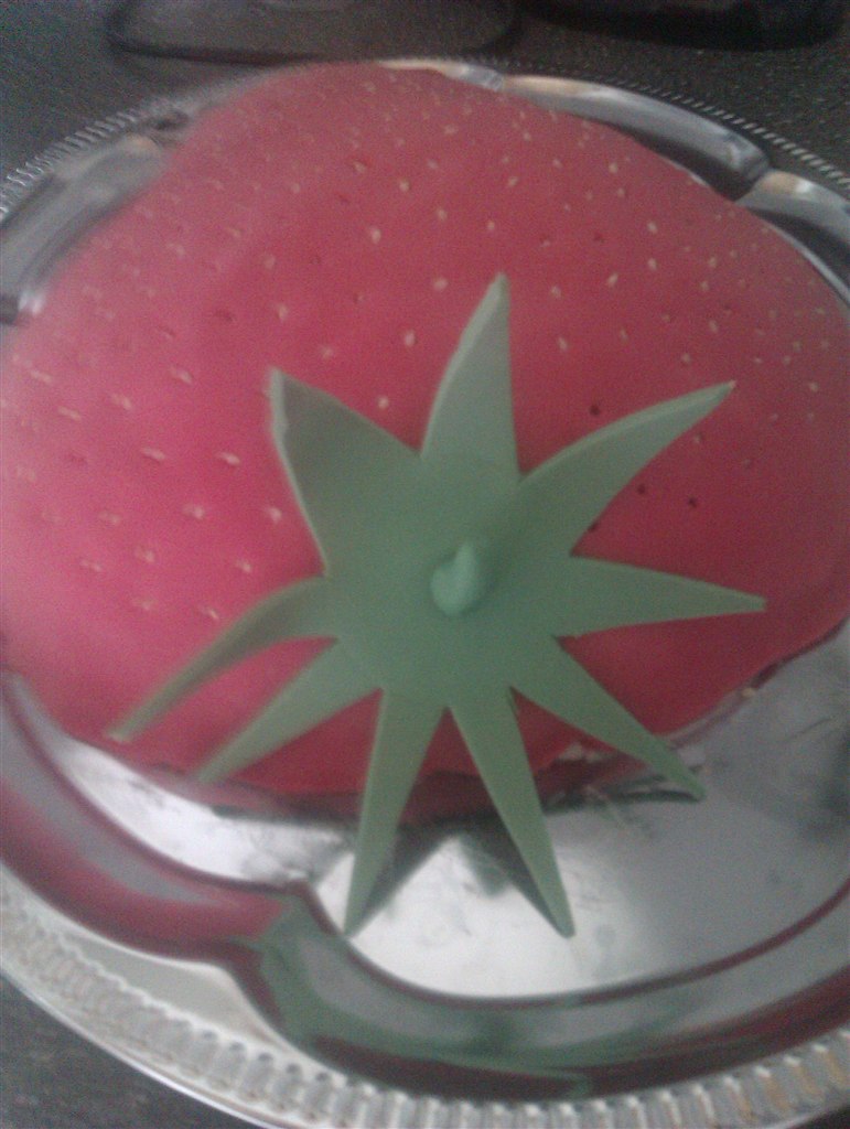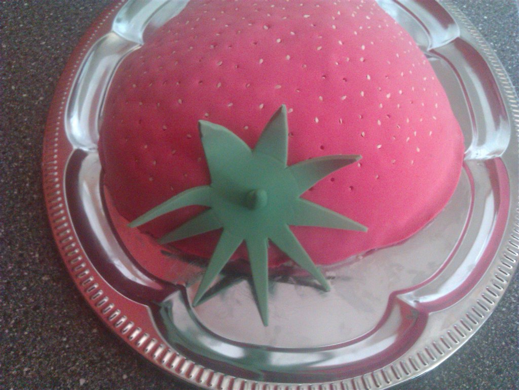 Det er min mand der har været kreativ, så han harlavet formen, han synes lige jeg skulle lave en jordbærkage til mit arbejde.