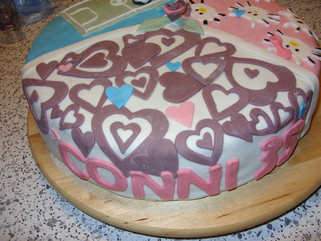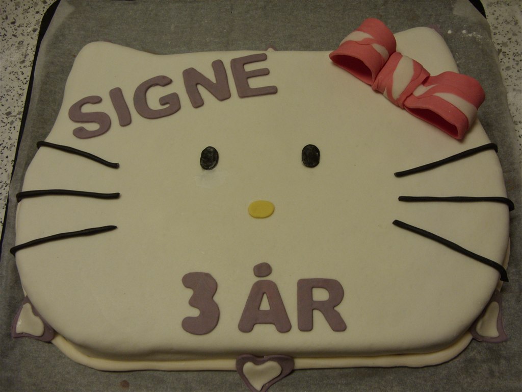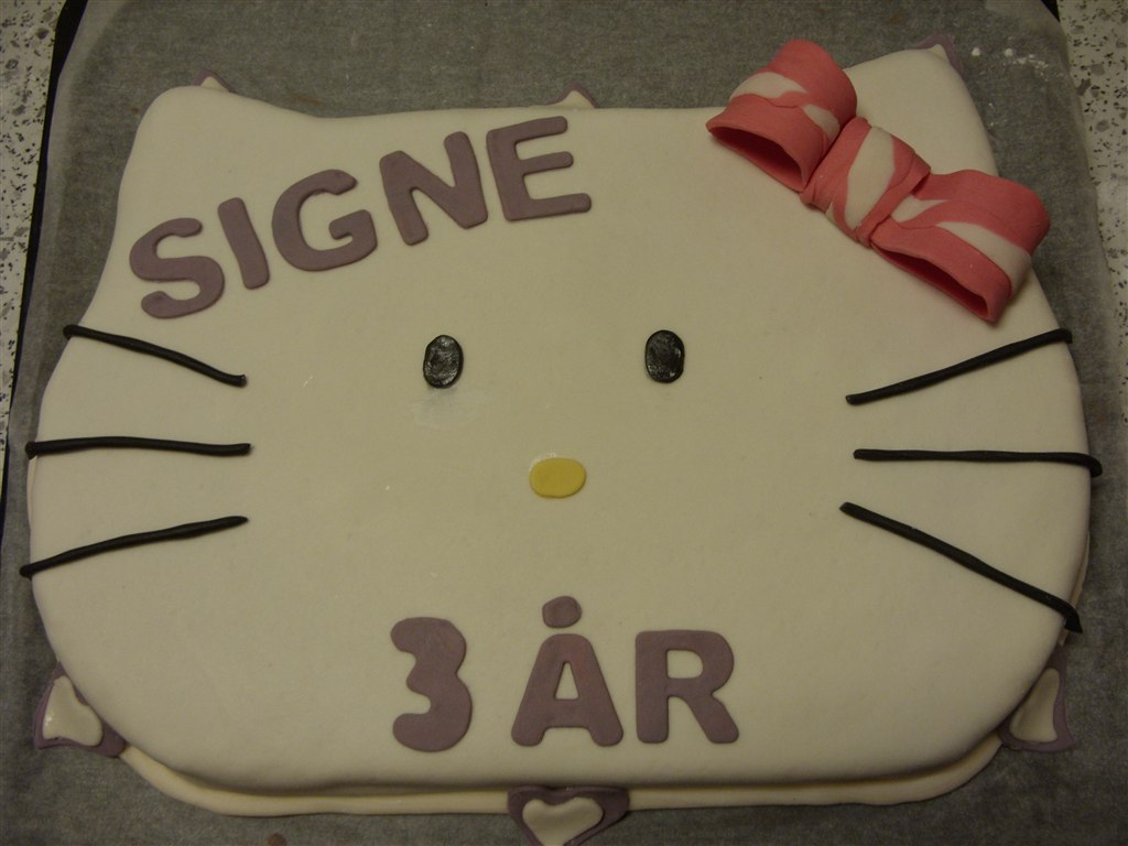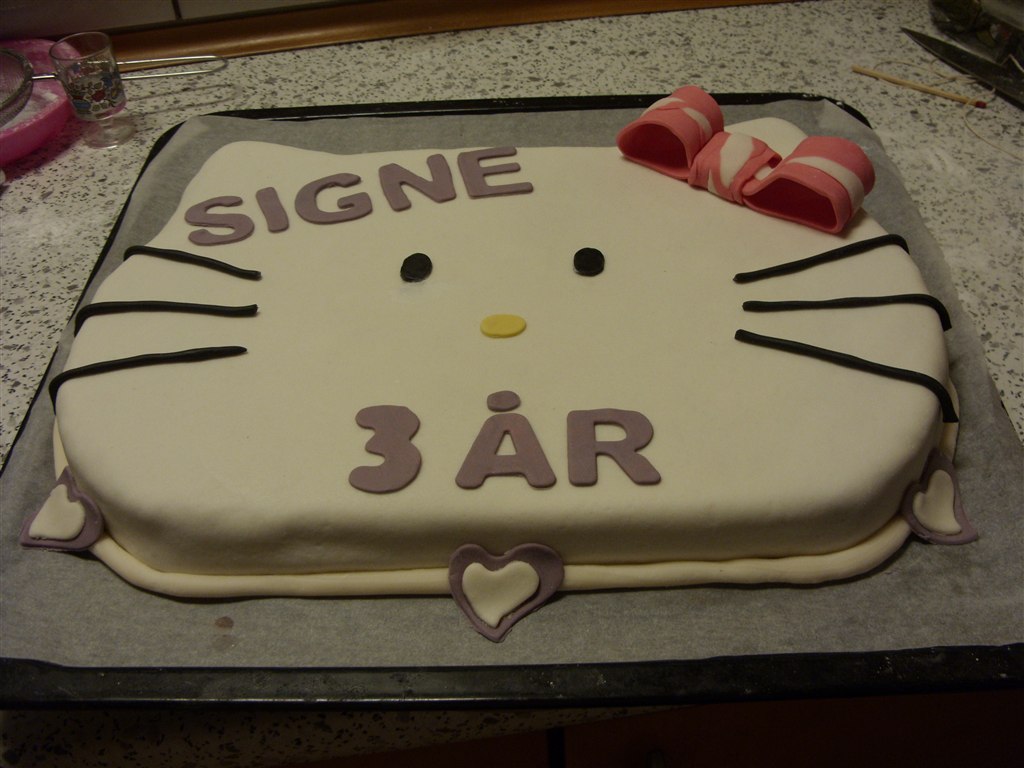 En dejlig kollega havde bestilt en hello Kitty kage til sin datters 3 års fødselsdag der skulle fejres i børnehaven. Så den 1. kage er en lækker lækker brunkage smurt op med nutella smørcreme og betrukket med mmf. Både børn og voksne i bhv var vilde med den.