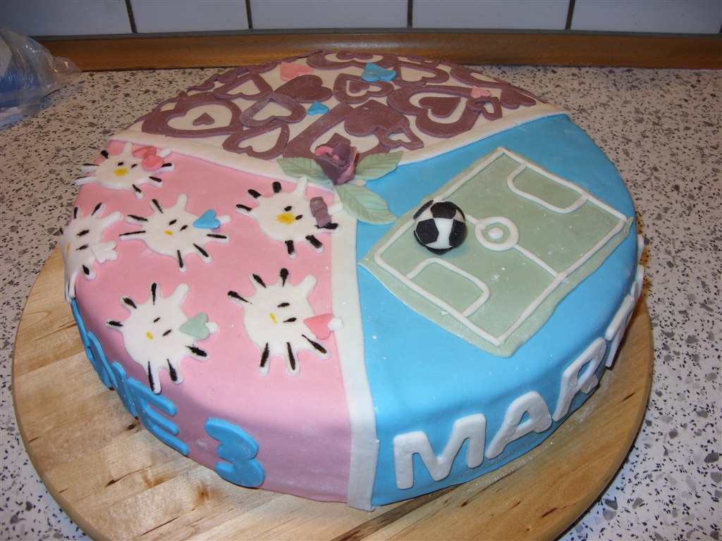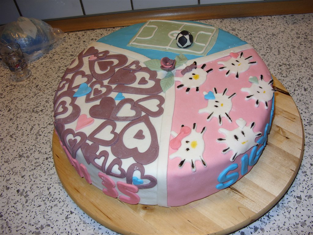 Den 2. kage havde hun bestilt til familie fødselsdag (28 pers). Både datteren på 3, sønnen på 11 og hende selv havde haft fødselsdag så jeg valgte at fejre dem alle på kagen.