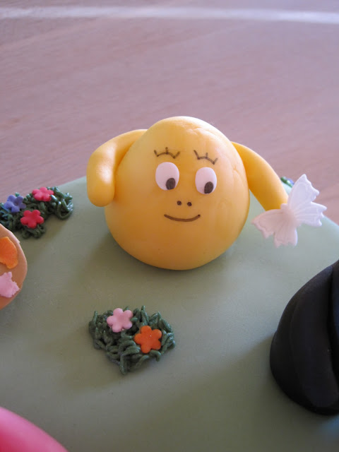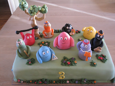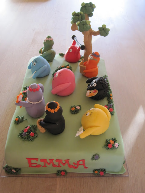 Polkaprik skriver: Så skulle der lige laves en Barbapapakage igen. Den tror jeg aldrig jeg bliver træt af at lave Den indeholder nøddebunde, hindbærmousse og hvis tobleronecreme. Smurt op med PSC og pyntet med fondant. Michelle Alle mine kager kan ses på http://michelles-droemmekage.blogspot.com/