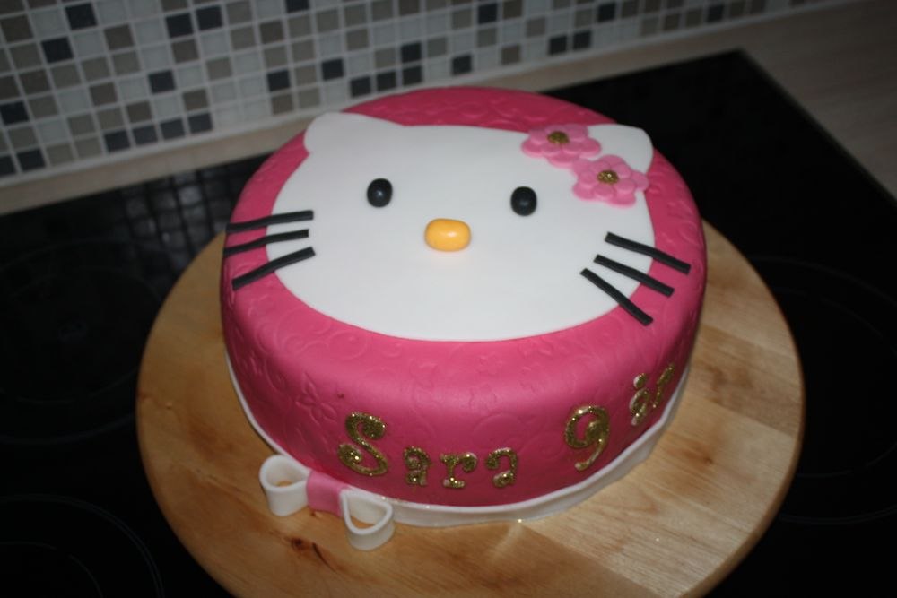 En kittykage, som jeg har lavet før Dejlig nem at lave. Og så en 1 års kage til en sød pige fra min søns vuggestue. Det er min første baby og den er lidt mulat, da pigen er mulat Synes den blev rigtig fin