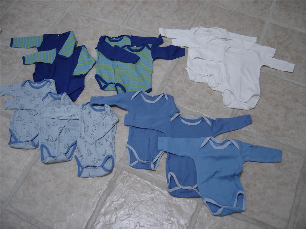 12 i drengefarver, 3 gratis følger med. Så 15 i alt... Den ene knap på den hvide er faldet af, men kan stadig bruges. Samt de 2 blå kortærmede med følger.