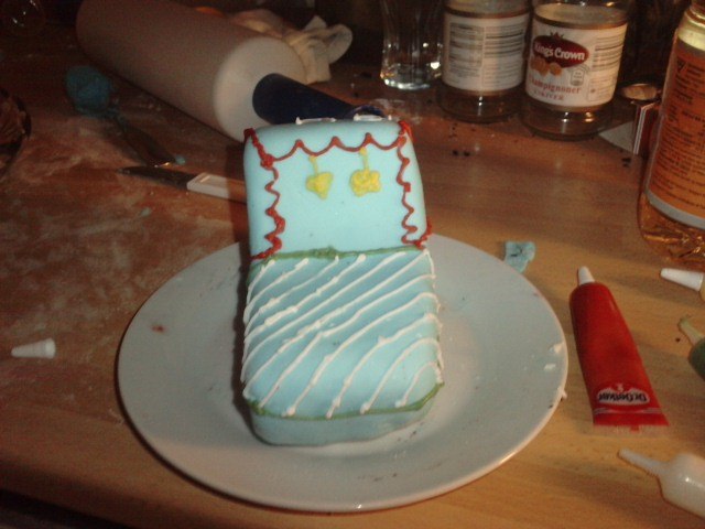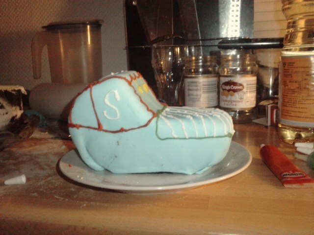 Her er lige lidt billeder af den lille barnevogn jeg lavede som pynt til kagen til vores søns barnedåb