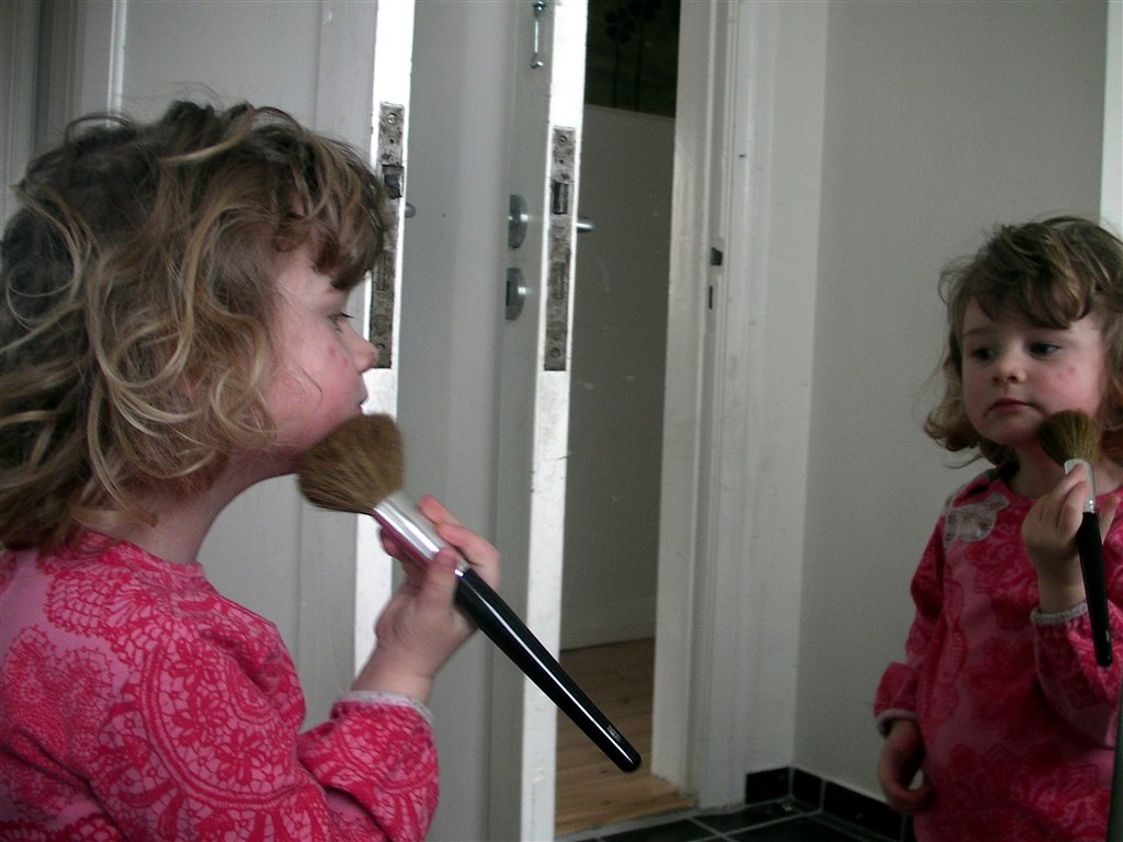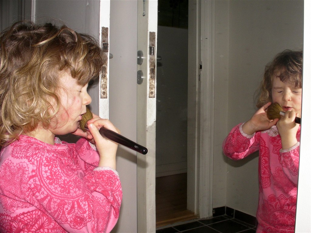 Neej, hun er ikke ved at spise hende.....selvom det nu nok kunne se sådan ud, hehe. Hun giver hende en ordentlig PRUSTER på halsen, fordi Bianca sad og lavede ræve-søvn ved aftensmad-bordet.