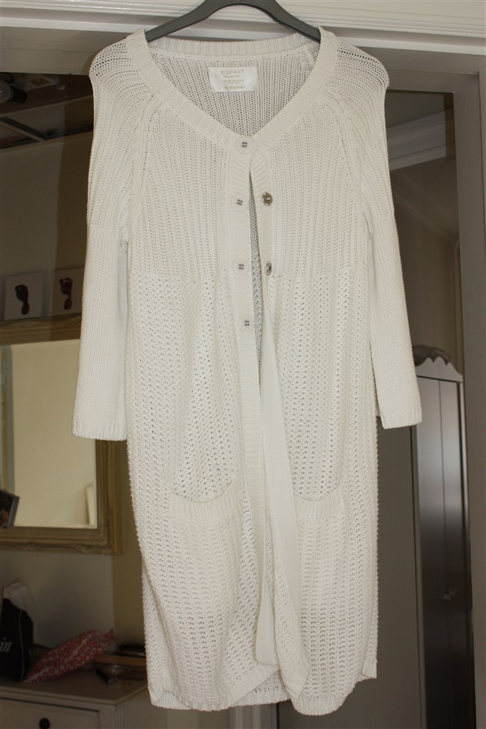 Billed 9-10: Hvid lang striktrøje fra Esprit i str. xl. Den er også kun brugt meget få gange.