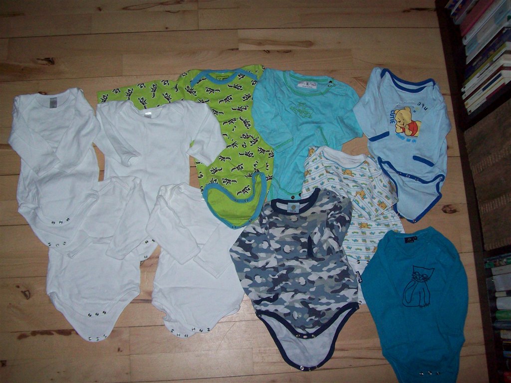 Billede 3: Super lækre bodyer i rigtig god stand (stadig bløde og lækre) NB - der er 3 hvide tilbage, den blå army body + den med mange Peter Plys'er.