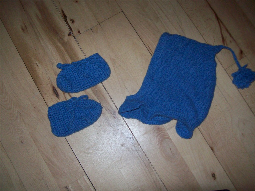 Billede: Hjemmestrikket hue i uld m. tilhørende.