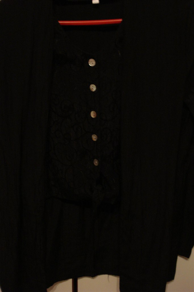 Sort jakke med "indbygget" top og tilhørende bukser str. M