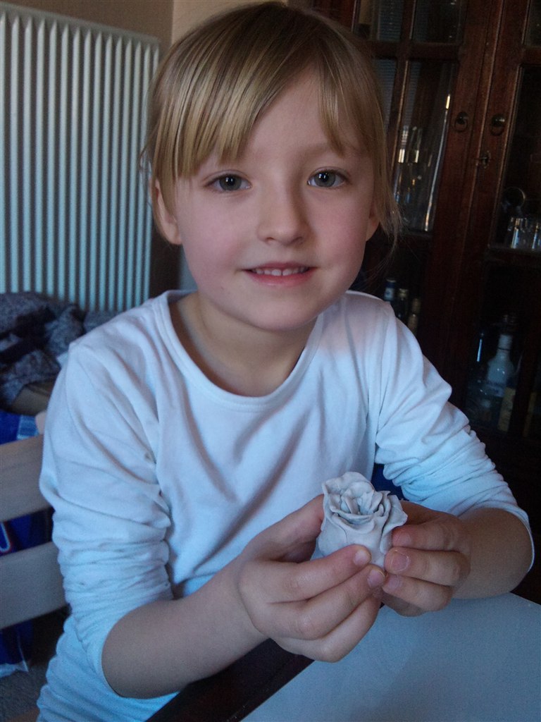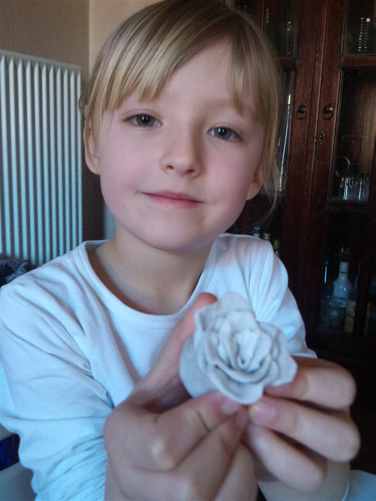 Hi hi hi, jeg fik faktisk kun taget to billeder, og de er af min datter, der har lavet sin første rose. Majbritt må sende billeder af alt det andet pynt, vi lavede