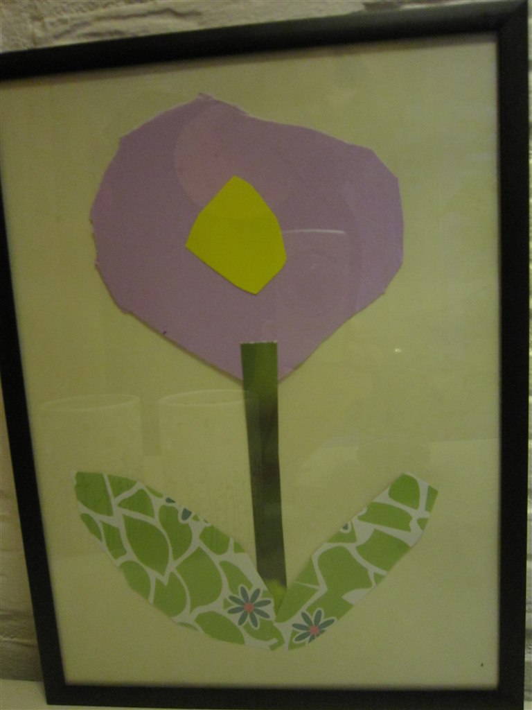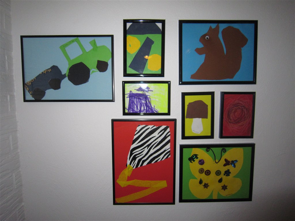 Billede 7: "Udstillingsvæg" med min 3 årig datters udklip fra børnehaven