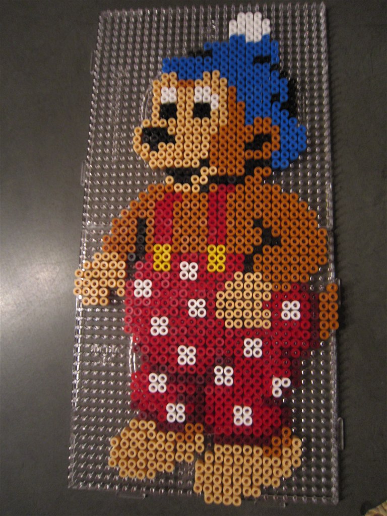 Billede 9+10: Rasmus klump perleplade - hængt op som væg pynt (den knækkede da vi skulle have den af perlepladen, så den skal laves om i nærmeste fremtid)
