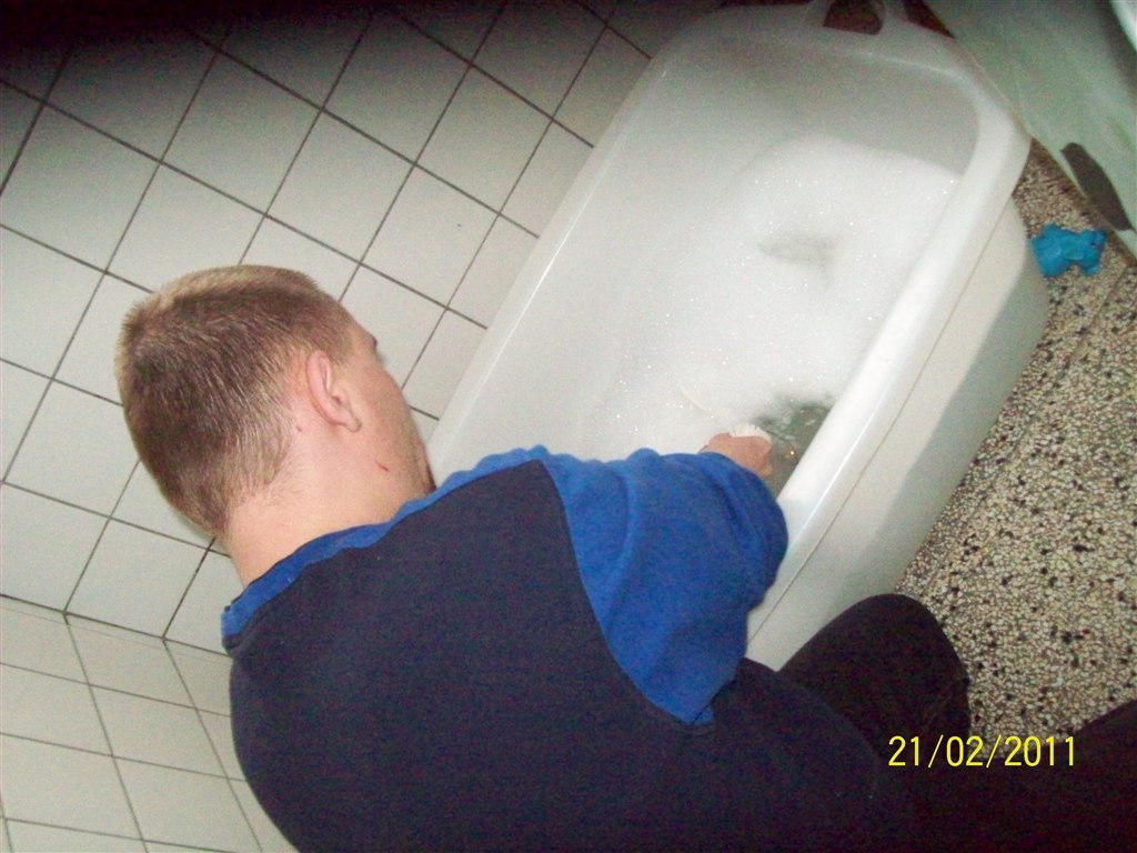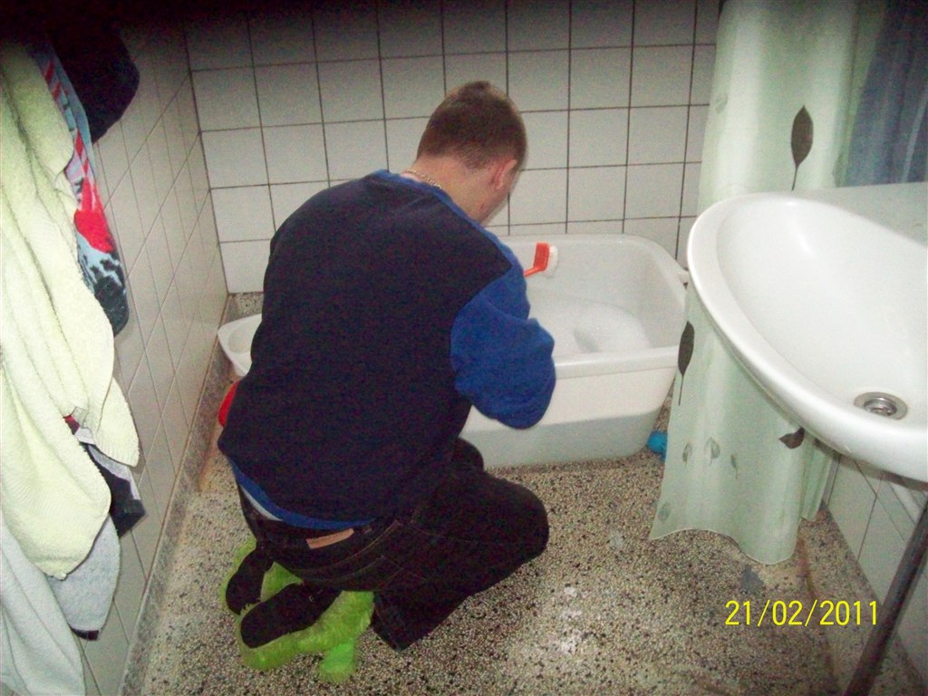 Jeg kan da ikke vente så længe på at mmin vask går i orden, vi har opvask, vi nok er nød til at vaske op i badekarret (vores store badekar, et sjovt billede til forklaring). Ikke sjovt. Når vi skal lave mad og hente vand på toilettet. Det dur bare ikke.