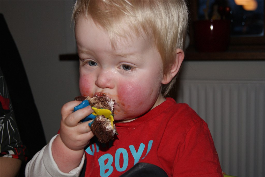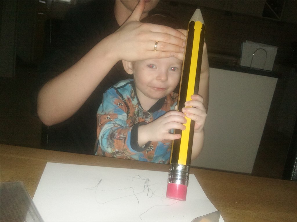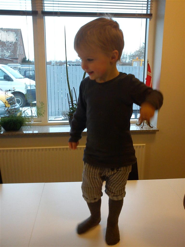 Stod igår da jeg hentede ham i vuggetuen, og kiggede på ham da han sang med de andre unger.. og knægten kan da bare alle de der fagter og lave et lille blad i hånden og lave en larve deri med sin finger.... Arghmen altså...