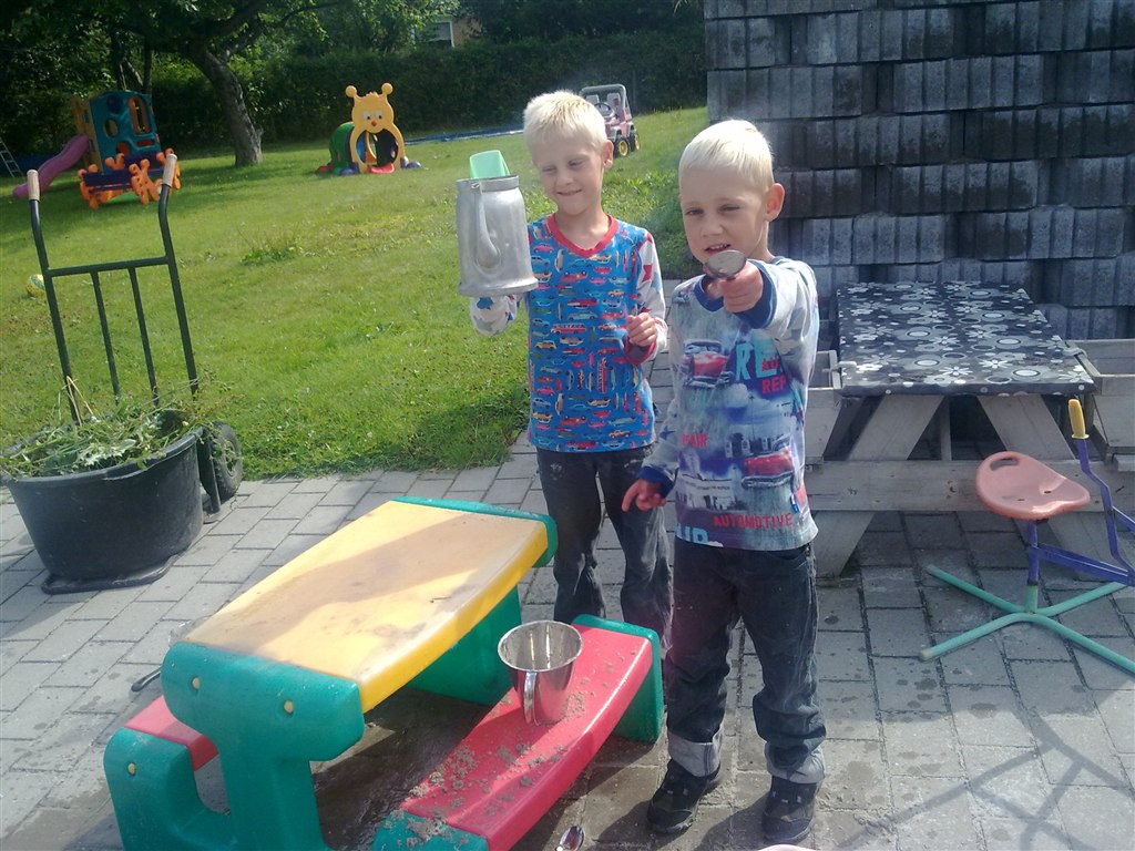 Hendes nuværende har dem lidt ude i haven, men ikke hver dag tror jeg, for de laver utrolig mange kreative ting deromme, hvilket jeg synes er dejligt... og er de ude og gå, så er det for at finde grene ved stierne, som de skulle bruge til fastelavnsris, og ungerne kunne løbe lidt frit, eller fodre heste, får osv, som du osse gerne vil.