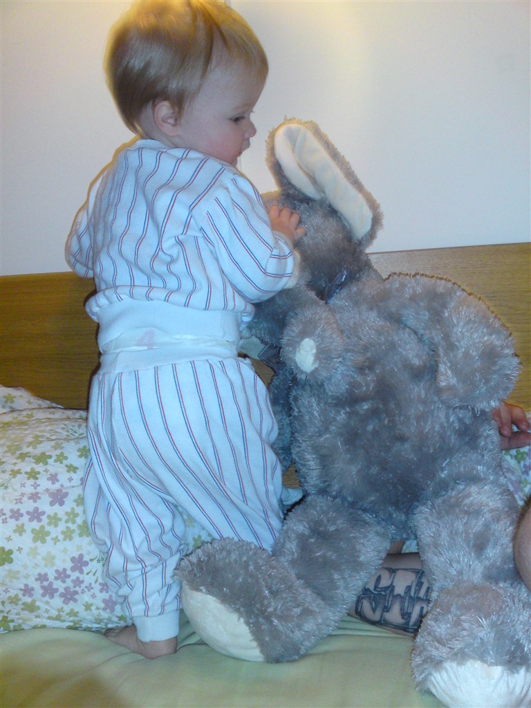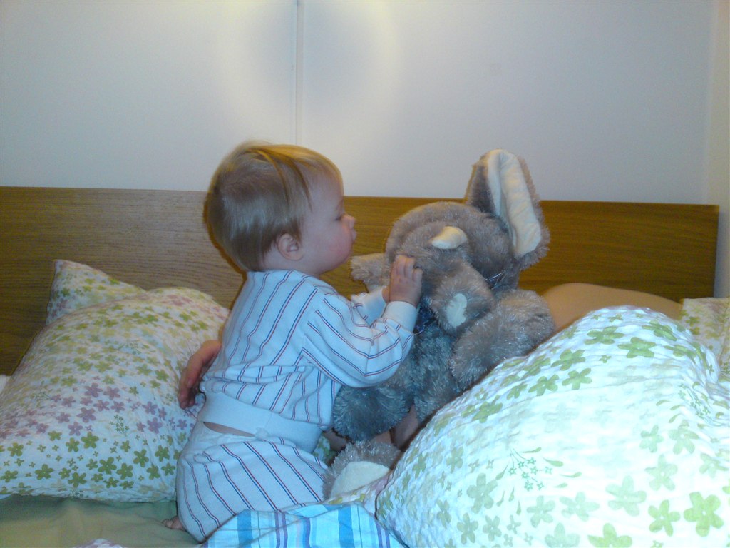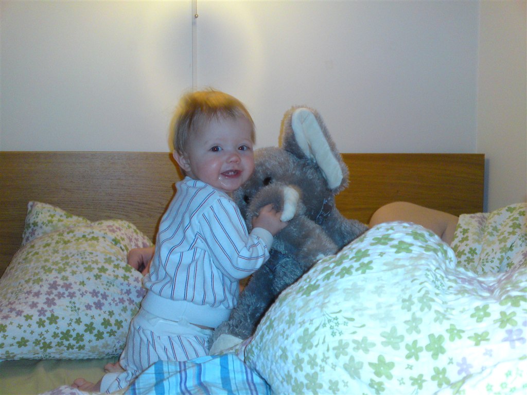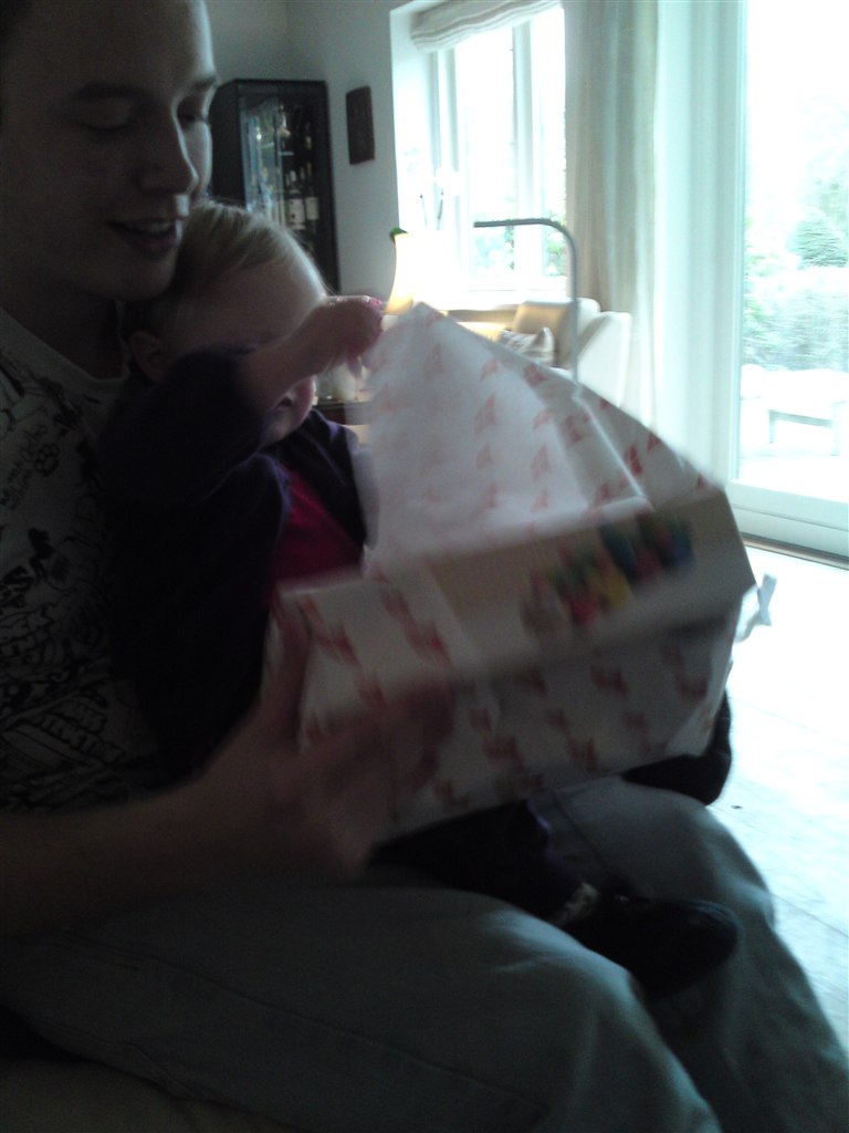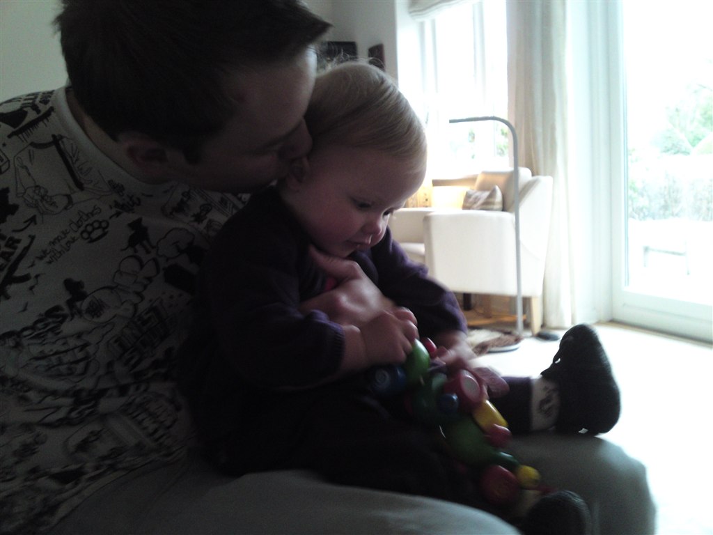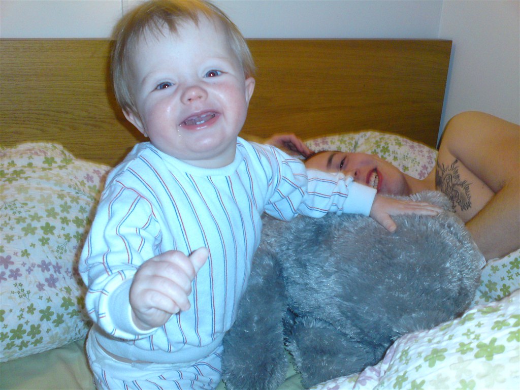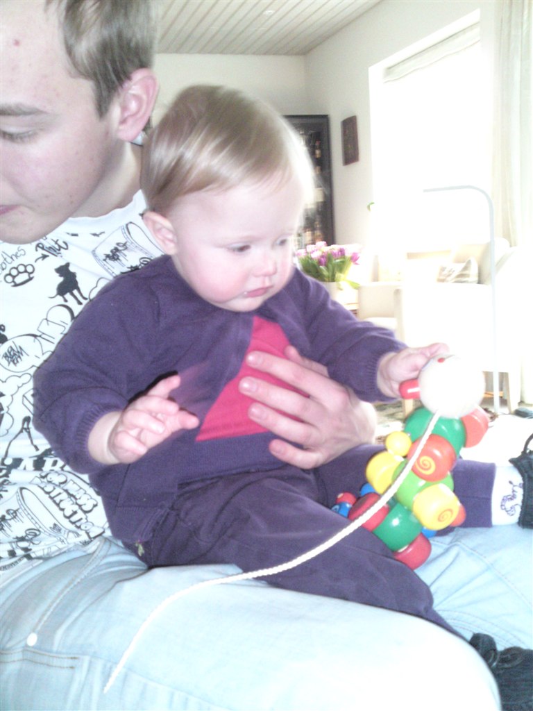 Så legede vi, hyggede os, sang fødselsdagssang og havde det dejligt. Vi stod op og spiste morgenmad, brugte god tid på at finde fødselsdagstøj og pusle/hygge. Kl 08.37 SMÆKKYSSEDE vi på hver vores kind og sagde "NAAAAAAJ. nu er baby 1 helt år" (og mor græd en lille tåre