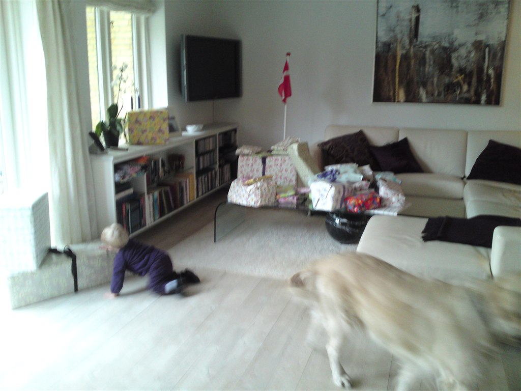 Da børnene havde leget lidt og kysset Laura tillykke med fødselsdagen tog vi hende med hjem igen. Vi hyggede lidt og tog derefter hjem til mormor og morfar for at lave gavebord og spise lidt frokost. Efter gavebord kørte vi hjem igen og gjorde lidt rent og gjorde klar til det store ryk ind dagen efter.
