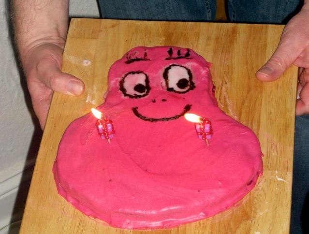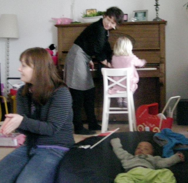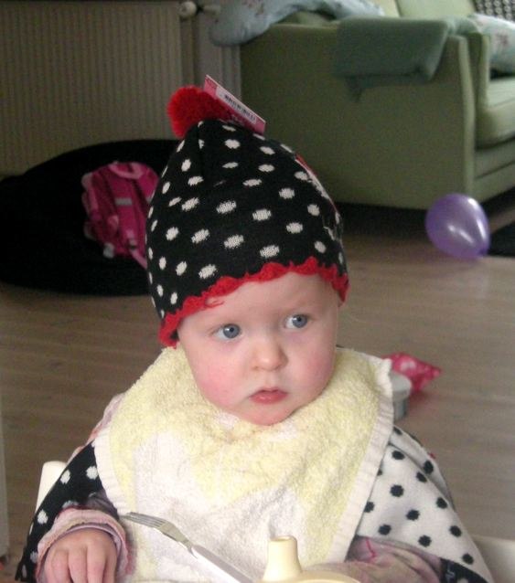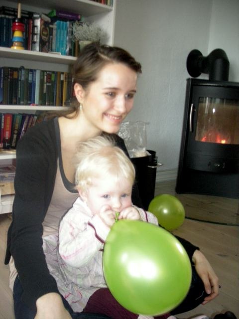 Hun har haft besøg af sine små venner fra inst. og 3 voksne. Der var bare tryk på, og der blev sunget og spist boller og Barbapapa kage, som mutter her selv havde lavet.