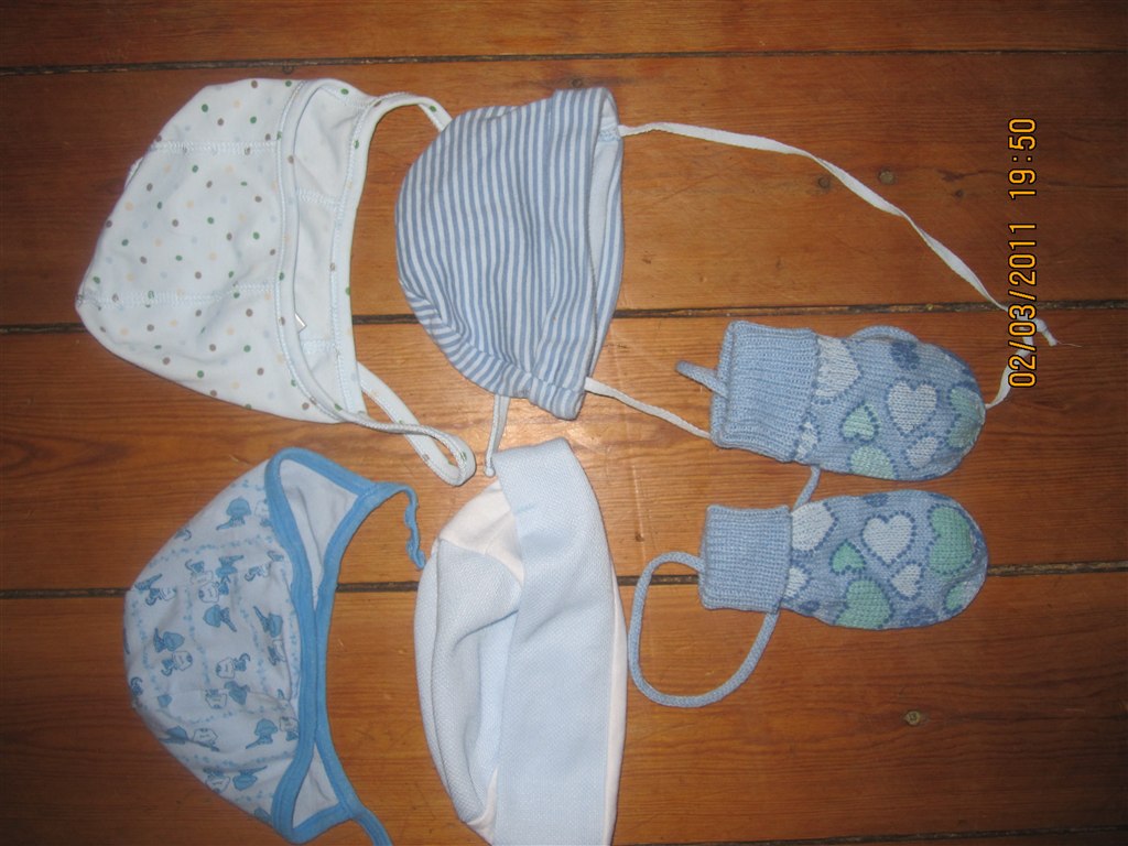 billede 5 baby hatte+ hansker (20 kr)