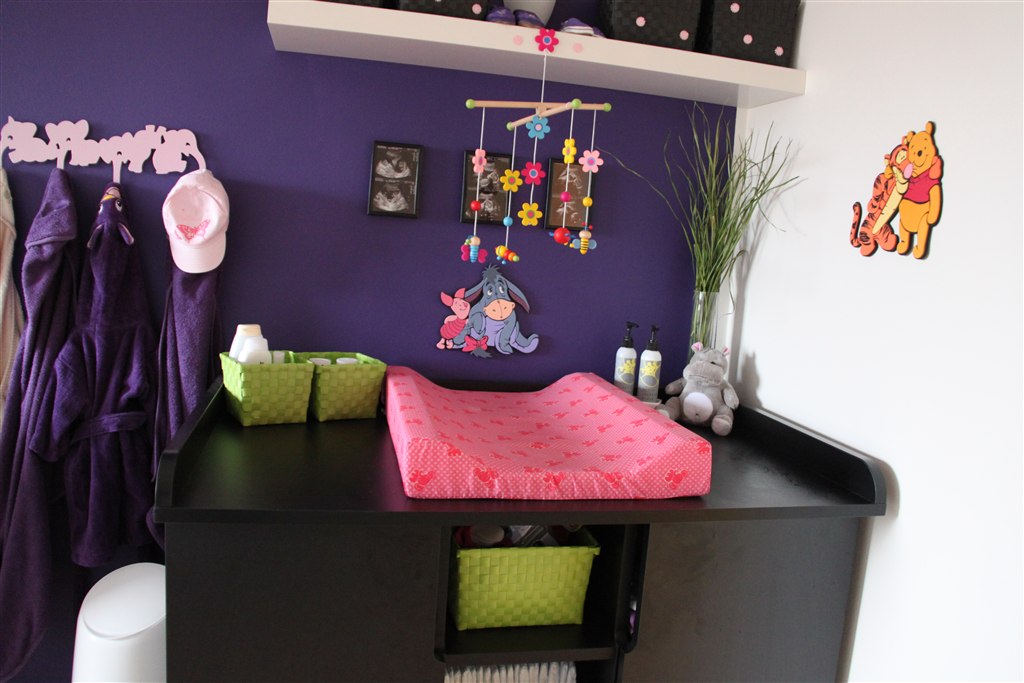 Det er et super flot værelse, især med den lilla baggrund. Rigtig tøsefarver. Det er lige før jeg får lyst til at vi også skal svinge malerpenslen, dog med en anden farve, da vi får en dreng