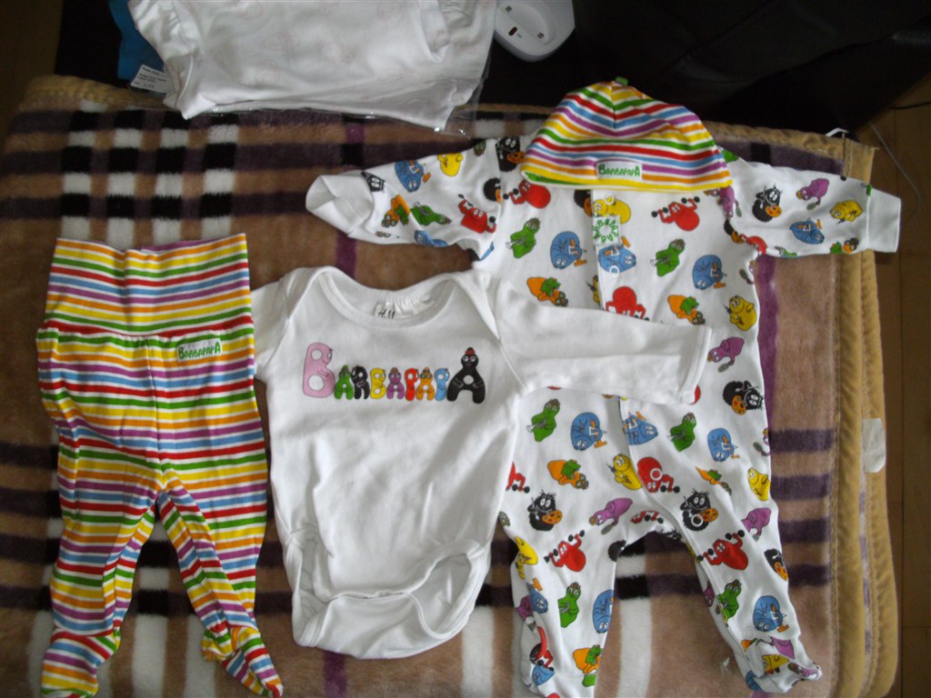 barbapapa body, bukser med fødder,hue og dragt str 56, mærket H&M