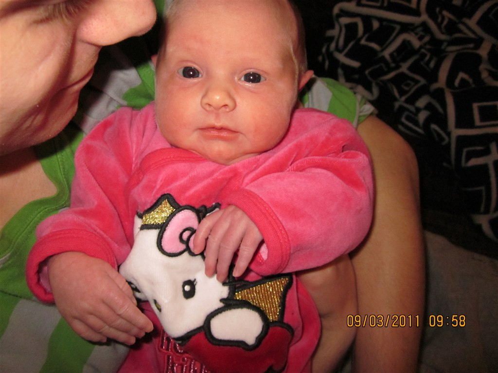 Billedet hvor hun er alene er hun 5 timer gammel.