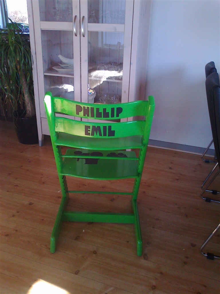 ) Den er ikke lakeret, men den kunne måske have trængt til et stykke fint sandpapir og så en omgang mere (men mor her er frygtelig utålmodig