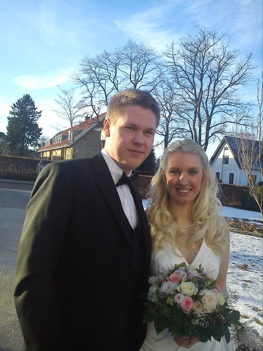 Vi havde først booket kirken til kl. 12 - synes dog at der ville være for meget tid bagefter inden maden. Så vi rykkede det til kl. 15. Var færdig i kirken omkring kl. 15.45, tog så billeder ved/i kirken og så videre til festen, hvor vi spiste kl. 17.45..