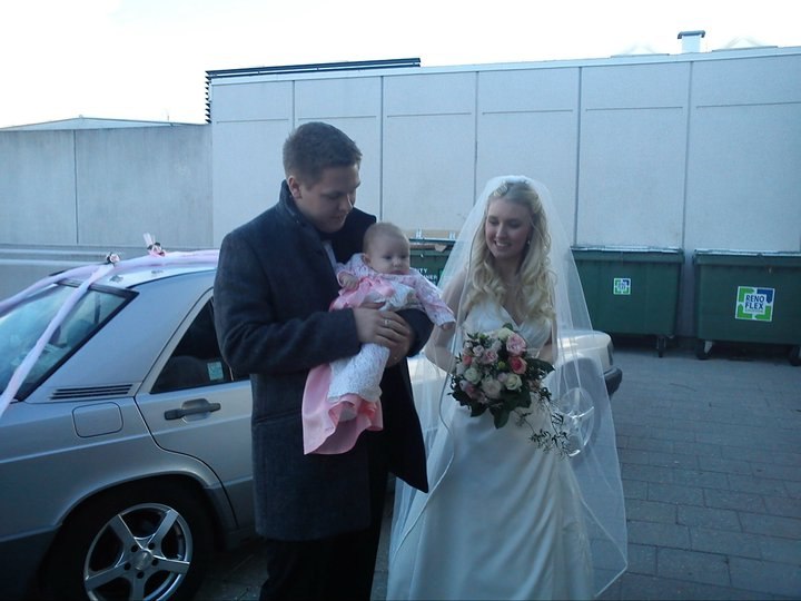 Det vra også blevet for stresset vist vi allerede skulle kl. 12 - for jeg havde tid hos frisør kl. 9 og makeup kl. 11. Og kom i kjolen kl. 14.. Plus kl. 14 fik Laura ren ble, flaske og kjole på..