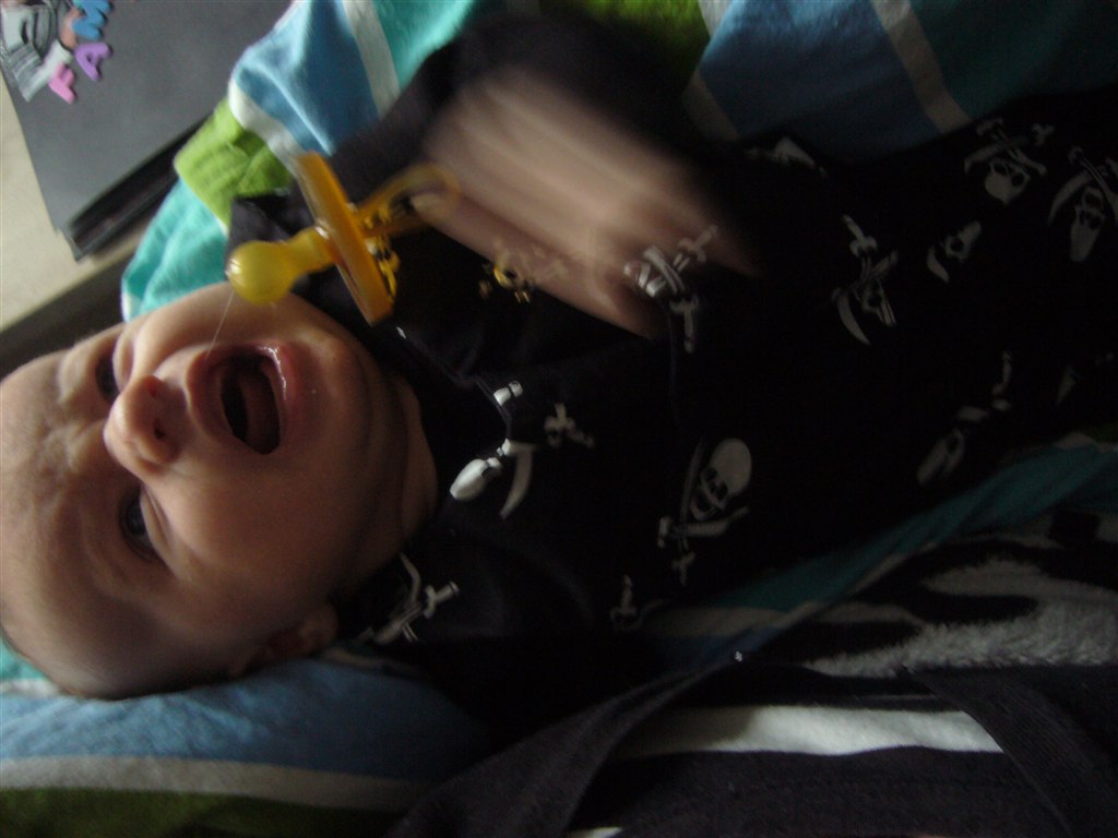 og så er der lige et billede af skrigeballonen i sine fine piratbukser som mor her selv har syet til gnallingen
