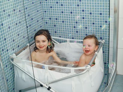 Vores piger kommer enkeltvis i karbad, eller også i brusebad sammen med enten mor eller far. Men de ville jo hygge sig SÅ MEGET MERE, hvis de kunne sidde sammen, på samme tid, og hygge/lege/bade. Og vi ville spare en masse tid og penge på at skulle bade dem hver for sig.